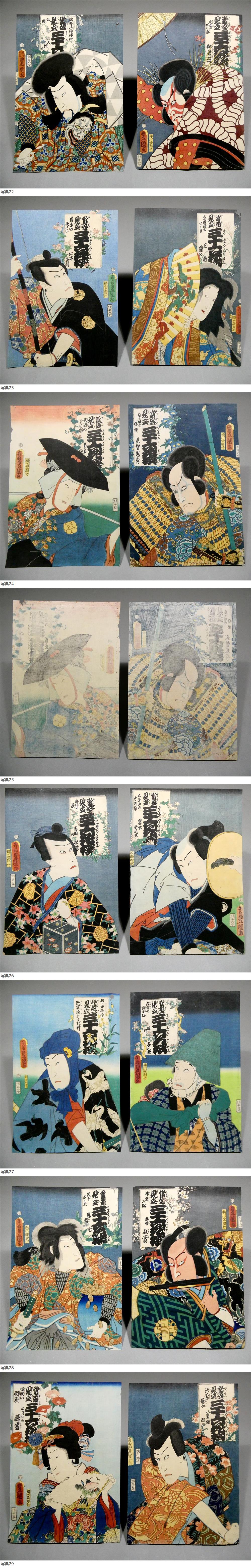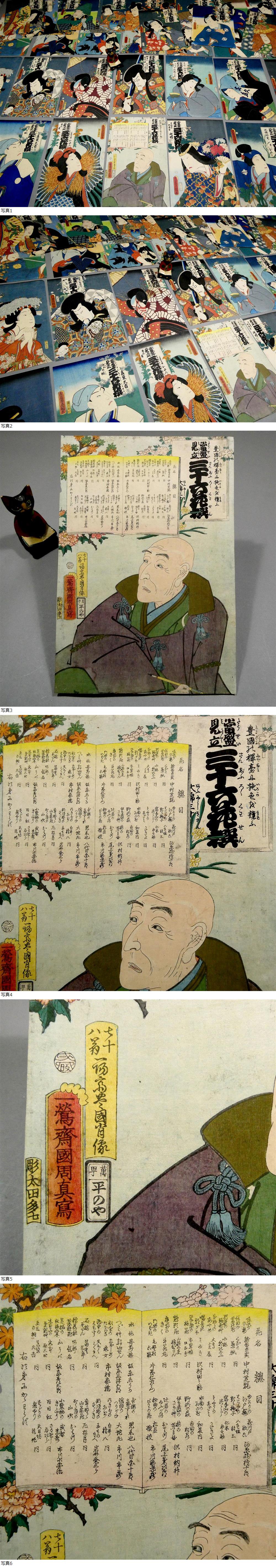 ■ 歌川国貞 35枚一括! 江戸時代 木版浮世絵 「当世見立三十六花撰」 内1枚は国周筆の国貞肖像&目録 ■