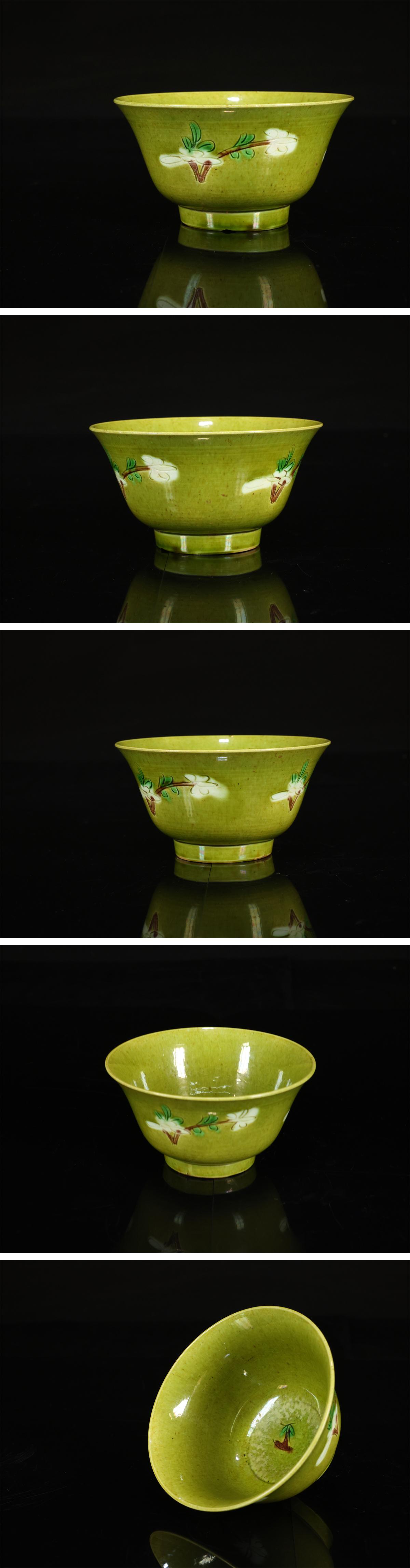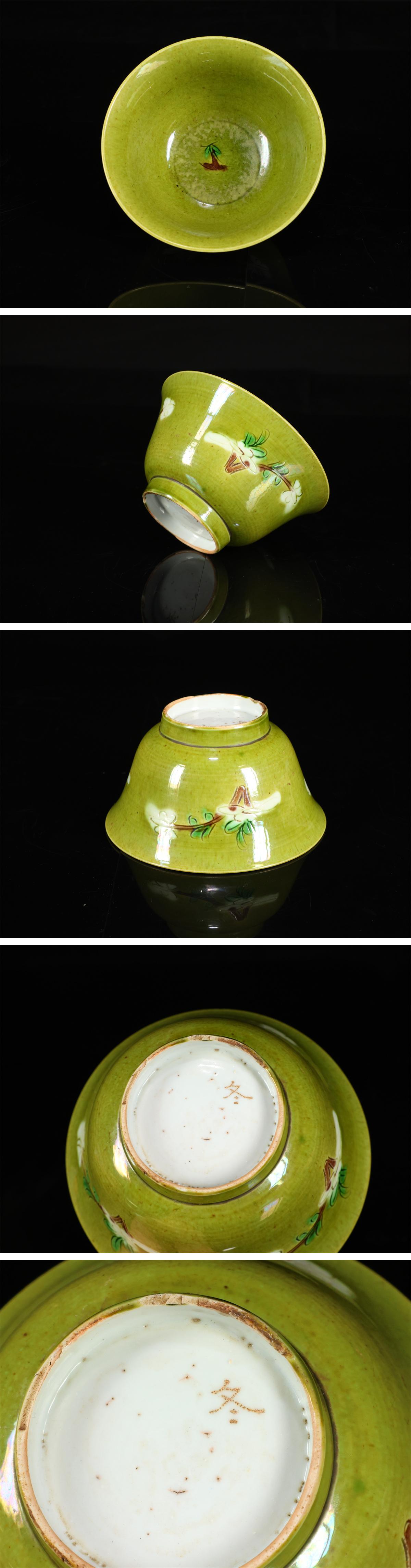 【吉】CL942 唐物 【清代景徳鎮製】 林檎緑釉花紋 茶碗 高6㎝ 径11.8㎝/箱付 高台のホツあり 美品R! 收藏