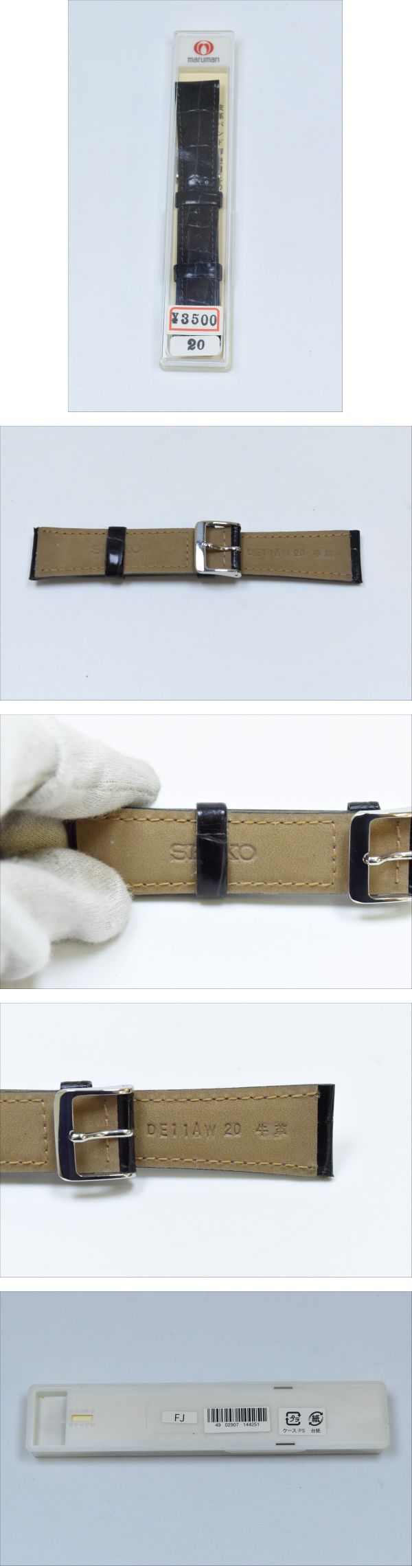 k6025 / 未使用 腕時計用 レザー ベルト セイコー SEIKO DE11AW 20 牛革 ブラック ケース付 現状品 收藏