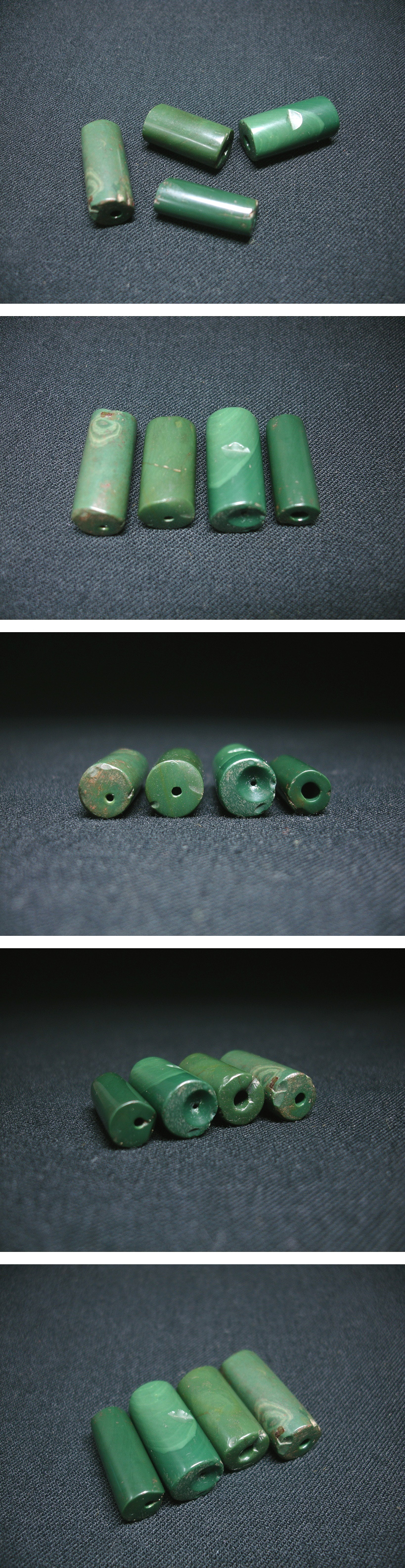 慶應◆コレクター放出品! 5世紀 古墳時代 碧玉(出雲石)管玉 4つまとめて 出土品 古代装身具 4 收藏