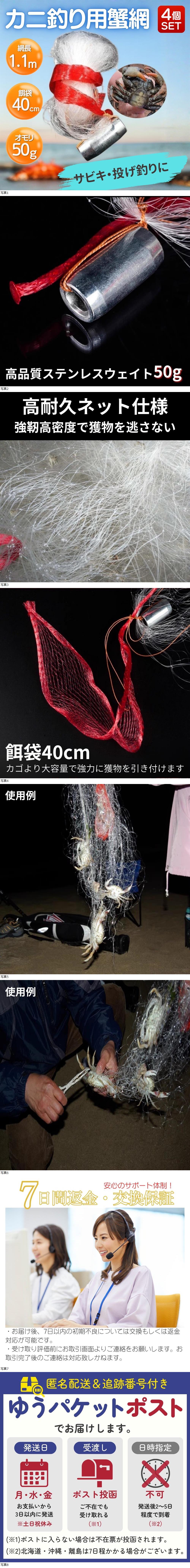 カニアミ 4個セット カニ網 仕掛け 蟹取り ワタリガニ 漁具 蟹 釣りカニ 捕り 網 60〜80cm オモリ50g 釣り 仕掛け もんどり 投網 サビキ 收藏
