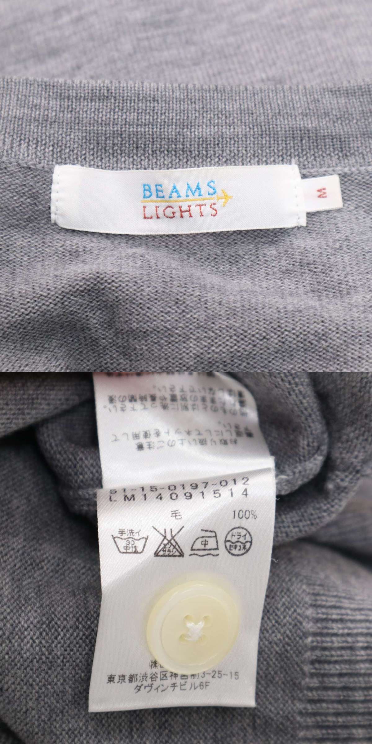 BEAMS LIGHTS ビームス ライツ 秋冬 ウール100%★ ニット カーディガン Sz.M メンズ 灰 收藏