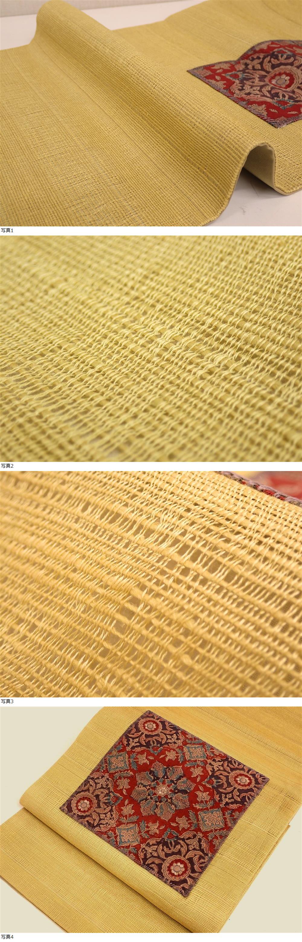 秀品 名古屋帯 仕立て 31cm×365cm 更紗文 オリエンタル柄 金糸 手刺繍 芥子色 和装 和服 着物 帯 P12163 收藏