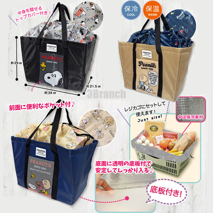 スヌーピー レジカゴバッグ 保冷バッグ 保温バッグ トートバッグ 保冷 保温 大容量 クーラーバッグ エコバッグ レディース メンズ ブラック 收藏