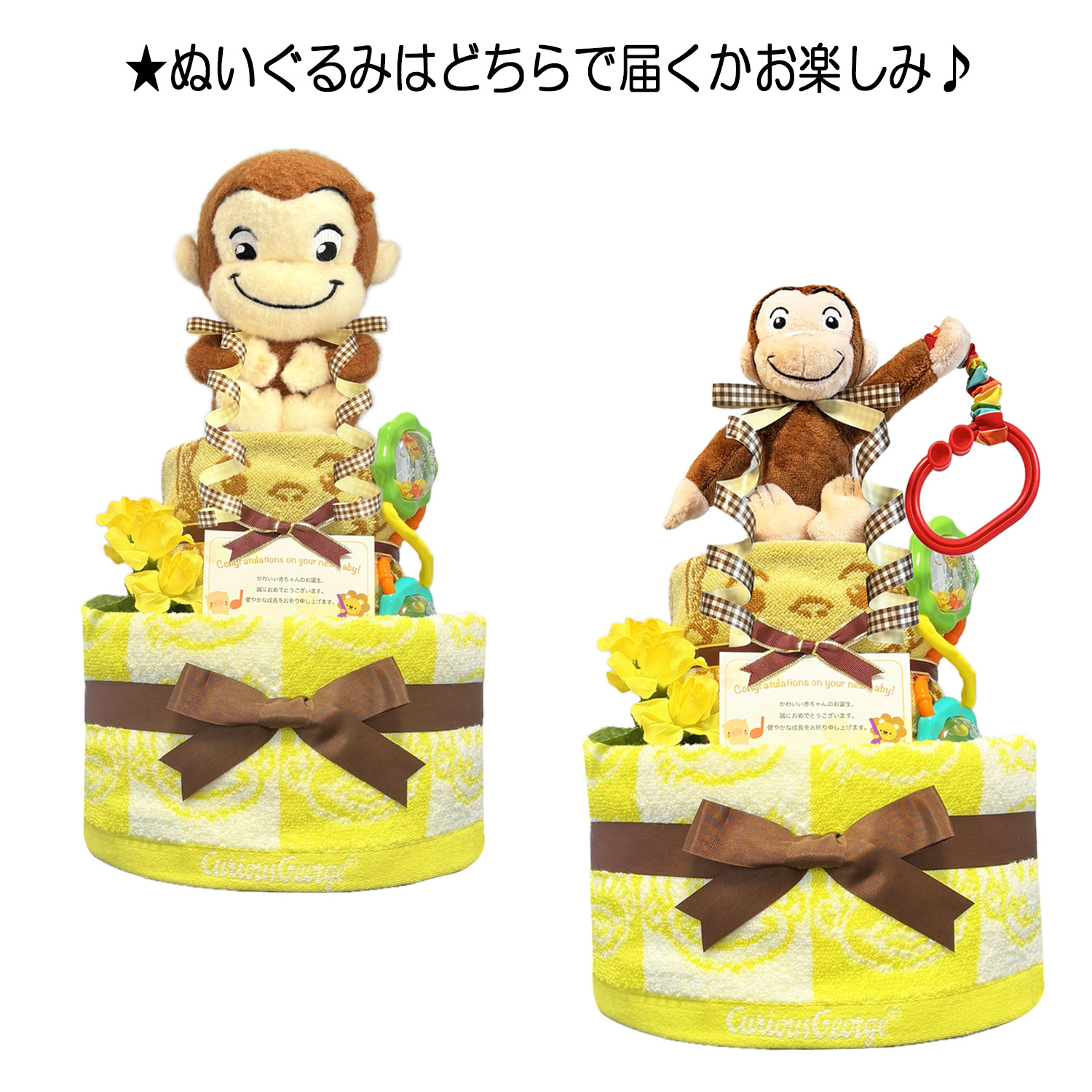 おむつケーキ◆出産祝い おさるのジョージ 豪華2段 女の子 男の子 ベビーシャワー ハーフバースデー オムツケーキ ギフト 收藏