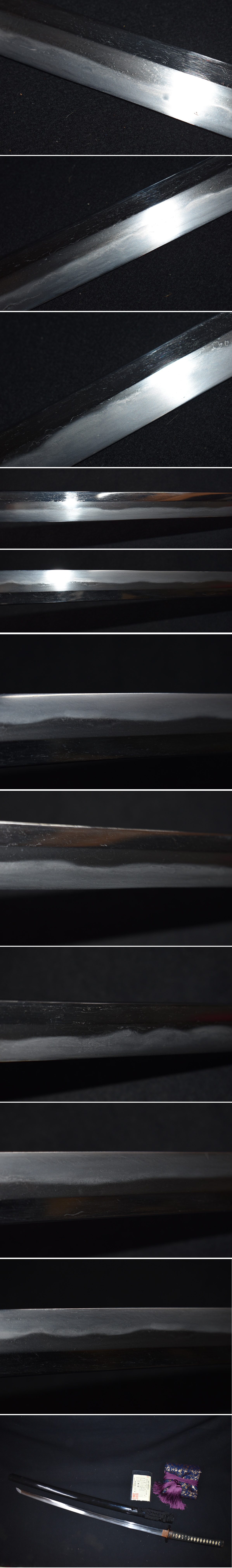 ご覧いただきありがとうございます。今回出品する品物は、写真の刀です。 銃砲刀剣類登録証番号 岐阜県 第087994号 種別 刀 長さ 77.6センチ 反り 0.9センチ 目くぎ穴 1個 元幅約3.2センチ 元重約0.8センチ 先幅約2.2センチ 刀身だけの重量約853グラム 在銘 無銘 勤王刀の御刀で、拵え付きです。長さが77.6センチもあり豪壮な造りで、拵えも付いています。 勤王刀は、このような長寸の新々刀で薩摩・長州・土佐等の勤王・倒幕派の志士達が好んで佩刀し たことから「勤王刀」とも呼ばれます。 二尺二寸五分を超える長寸刀で、互の目乱れ刃紋の鎬造りです。刃紋も焼刃が広く豪壮な造りです。 多少の膨れや傷はありますが、錆やハギレはありません。 幕末期に流行した「勤王刀」の特徴 新々刀期は刀剣復古論に基づき、姿格好が良い古刀上位作が作刀された一方で、開国派や尊王攘夷 派、佐幕派(江戸幕府の政策を擁護する勢力)、倒幕派が入り乱れる幕末の不穏な世情を反映し、 ほとんど無反りに近いような浅い反りが施された、約2尺4~6寸(約73~78.8cm)という長寸の剛刀 (ごうとう)も作刀されていました。 このような武骨な日本刀は、薩摩藩(現在の鹿児島県鹿児島市)・長州藩(現在の山口県萩市)・土 佐藩(現在の高知県高知市)・肥前藩(現在の佐賀県佐賀市:別称[佐賀藩])といった尊王(勤王) 、あるいは倒幕派の志士達の需要に応えた物であったことから、「勤王刀」(きんのうとう)と呼ばれ ているのです。 外国奉行を務めた幕臣「水野忠徳」(みずのただのり:別称[水野癡雲:みずのちうん])の回顧談 によると、江戸幕府によって所持が認められていた長さである定寸(じょうすん:2尺3寸5分[約71cm] )以上の日本刀を、武士達がこぞって買い求めるようになったのは、1860年(安政7年)に発生した、 尊王攘夷派の水戸藩(現在の茨城県水戸市)の浪士達による大老「井伊直弼」(いいなおすけ)の暗殺 事件、「桜田門外の変」以後のこと。 混乱を極めた幕末の時代を象徴する同事件がきっかけとなり、水心子正秀の刀剣復古論に呼応するかの ように、長大な勤王刀の需要が武士達の間で急激に高まっていったのです。 幕末期に作刀された勤王刀は、先に述べたように無反りに近い、浅い反りが付き、刃長・茎(なかご) が共に長く、大鋒/大切先(おおきっさき)となる姿が特徴。 このような勤王刀は、水戸藩が成立させた「水戸学」による尊王攘夷思想が各藩に普及するにつれて、 全国で流行していくこととなりました。 勤王刀の著名な例には、長州藩の尊王攘夷志士「高杉晋作」(たかすぎしんさく)が、自身の肖像写真 で手にしている愛刀「安芸国佐伯荘藤原貞安」(あきのくにさえきしょうふじわらのさだやす)や、 尊王攘夷を掲げて結成した「土佐勤王党」の盟主、「武市半平太」(たけちはんぺいた:別称[武市瑞 山:たけちずいざん])の差料である、「南海太郎朝尊」(なんかいたろうちょうそん/ともたか)作 の打刀などが見られます。 後は写真と画像を見て判断下さい質問はわかる範囲でお答えしますので、入札前にお願いします。 発送はゆうパックの着払いです。 ※注意事項※落札しましたら、登録のある教育委員会に名義変更届を出してください。 よろしくお願いします。 |