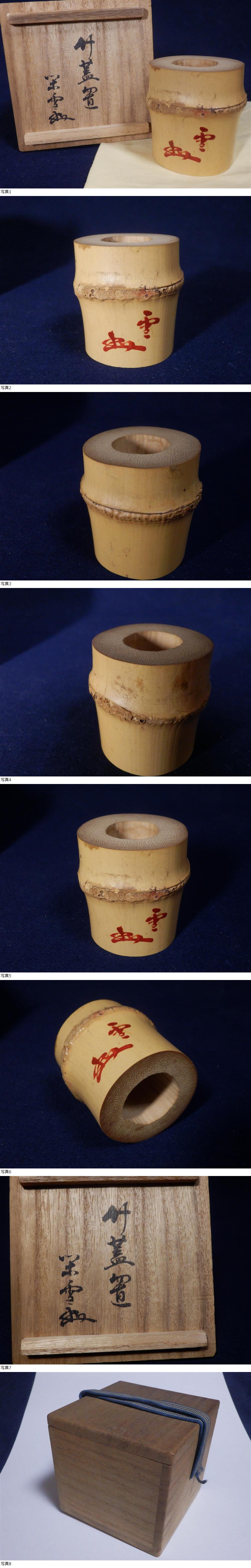 江戸千家 川上関雪 花押:書付 竹蓋置 (5.7x5.5cm) 共箱 (関雪朱書 炉用 一元斎不白 收藏