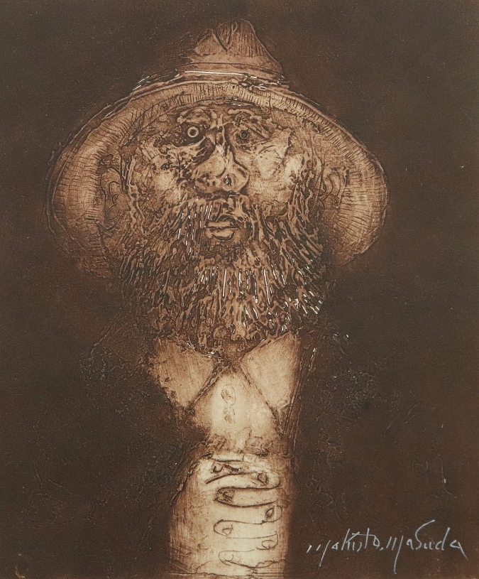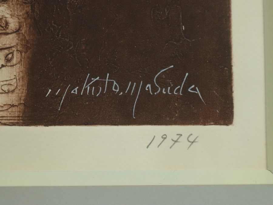 12389■【真作】増田誠 「サンチョパンサ」 銅版画 エッチング 直筆サイン 1974年の作品 洋画家 山梨の人 ドンキホーテ 額装 收藏