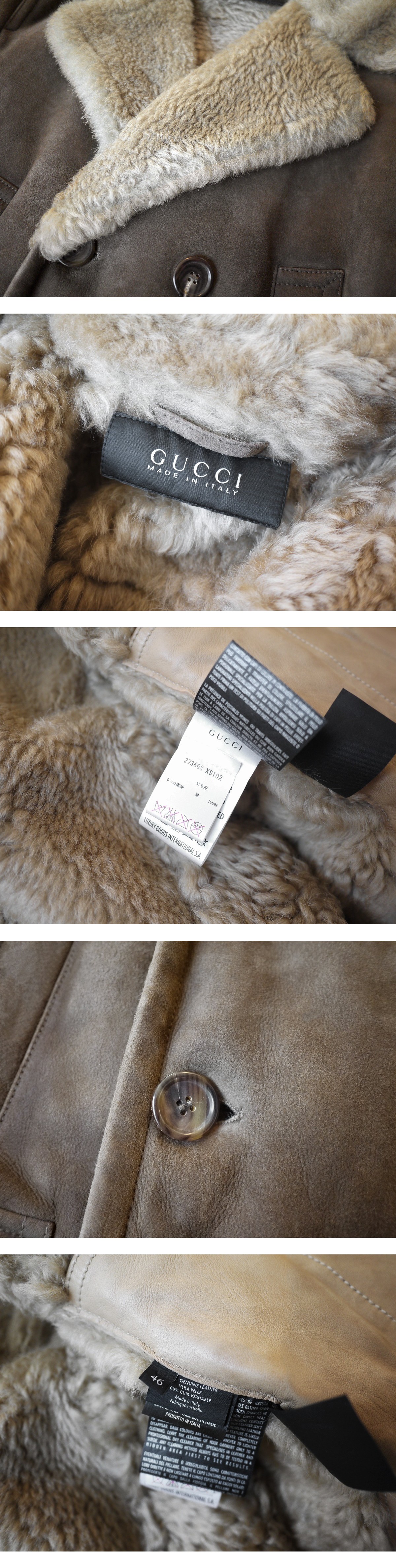 Gucciグッチのリアル羊ムートンコートでございます。ランウェイ画像と同モデルでございます。グッチならではのラグジュアリテイストとモードテイストを介在させ、大変存在感のある極上の逸品に仕上がっております。