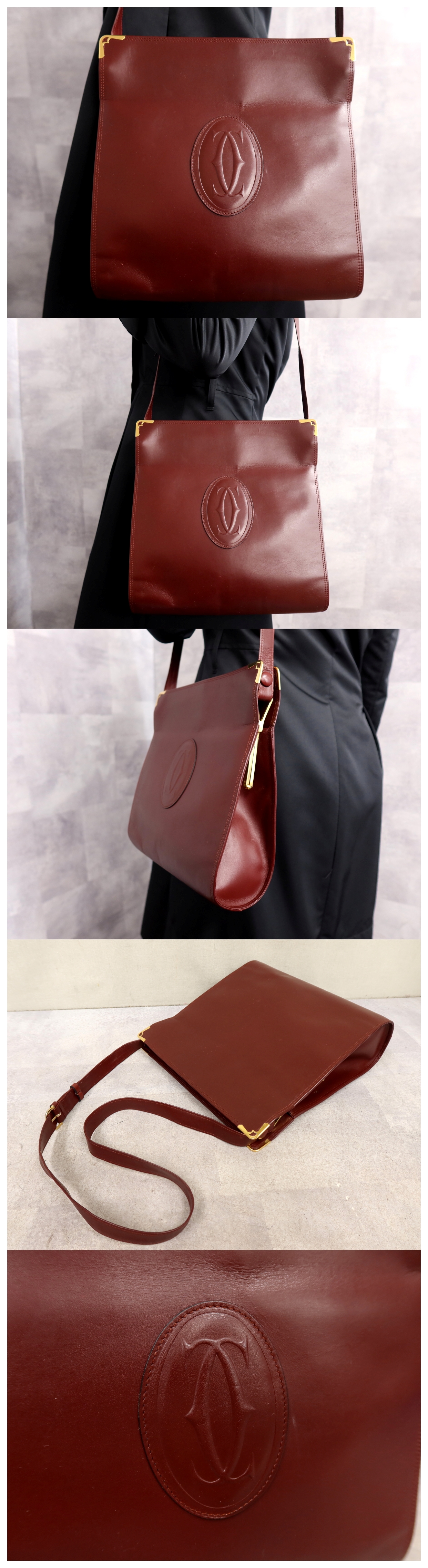 ●超美品●Cartier カルティエ●マスト●ロゴ型押し●カーフ レザー 本革●がま口 ショルダー バッグ●ボルドー●ゴールド金具●Js64633 收藏
