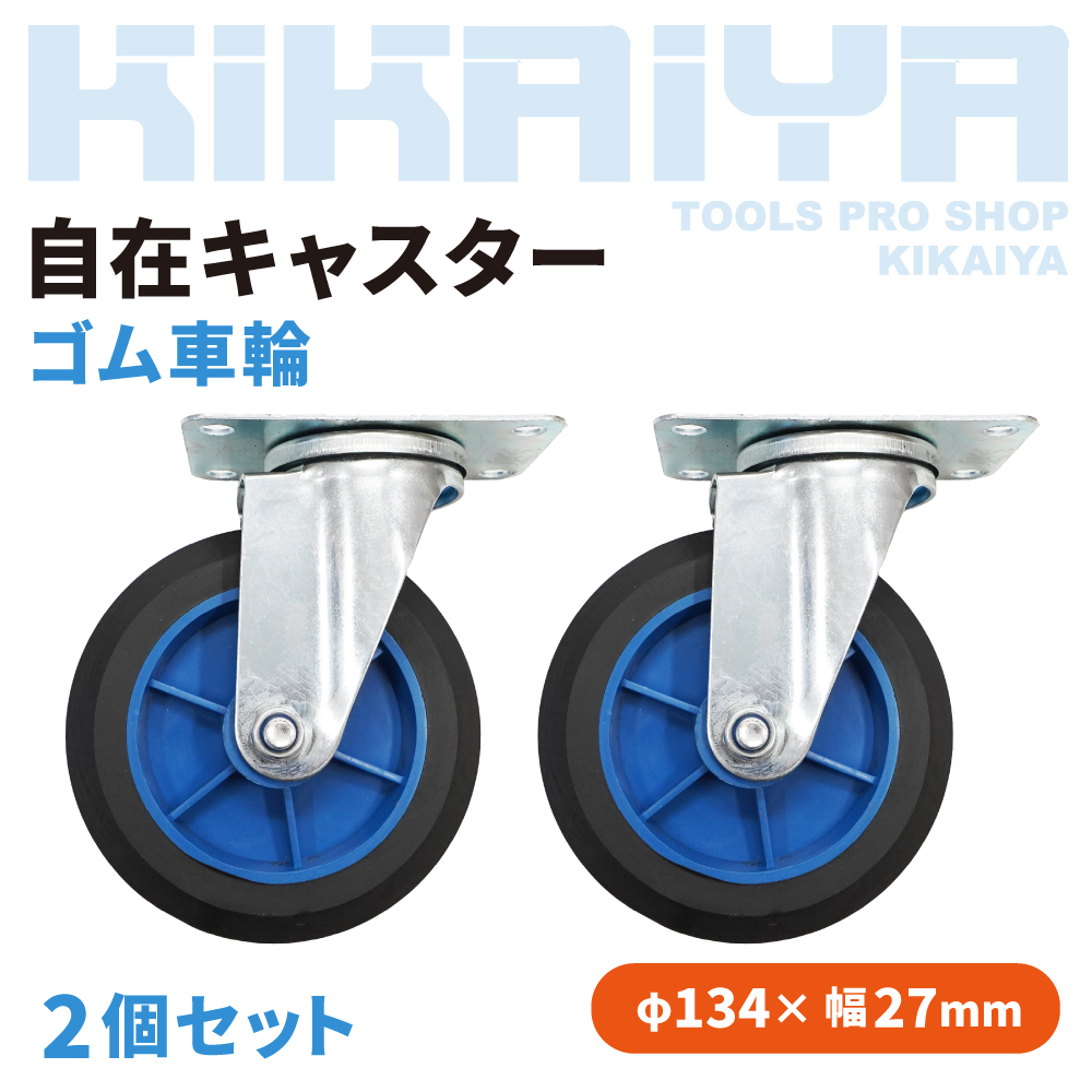 自在キャスター ゴム車輪 2個セット 134mm 取付穴ピッチ98×56mm ベアリング入り DIY キャスター KIKAIYA 收藏