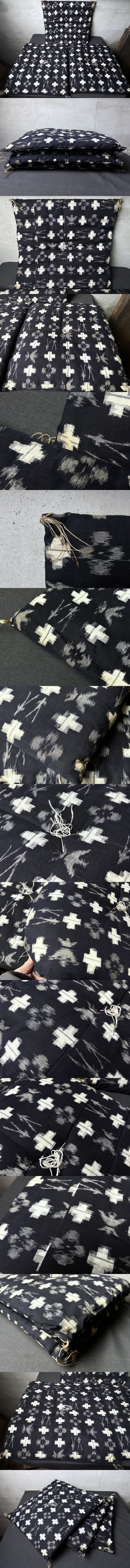 茶道具 茶席用 座布団 木綿 藍染 絣 3枚◇茶懐石/茶室/御手前/敷物/茶事/茶会/茶祭/和室/和小物/古布/時代/古民具/民藝/手縫い 收藏