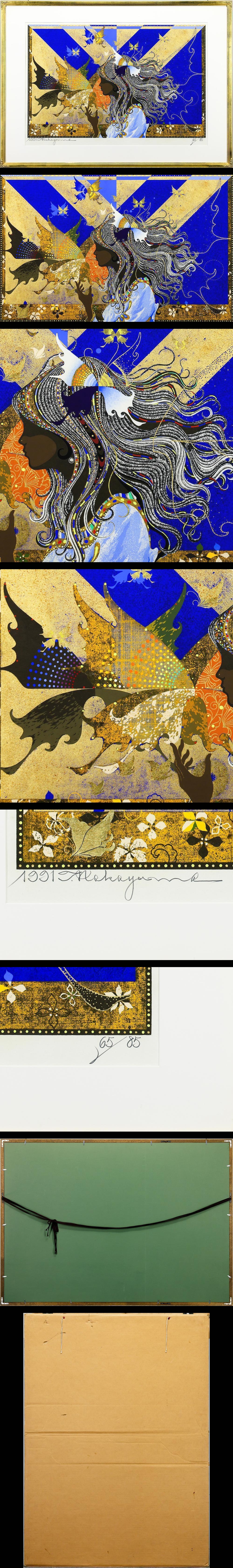 【真作】【WISH】中山正「蝶の道」木版画 約30号 大作 1991年作 直筆サイン 金箔 ◆人気作・美人と蝶 〇多色摺木版画巨匠 #26022158 收藏