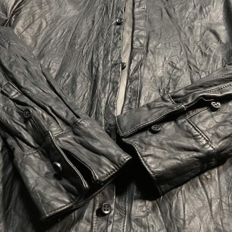 by Tass★最高級★タイト美ライン&艶MAX★馬革レザーシャツ ジャケット シワ加工 ホース 黒灰 L Tass Standard 男らしい武骨&優雅 收藏