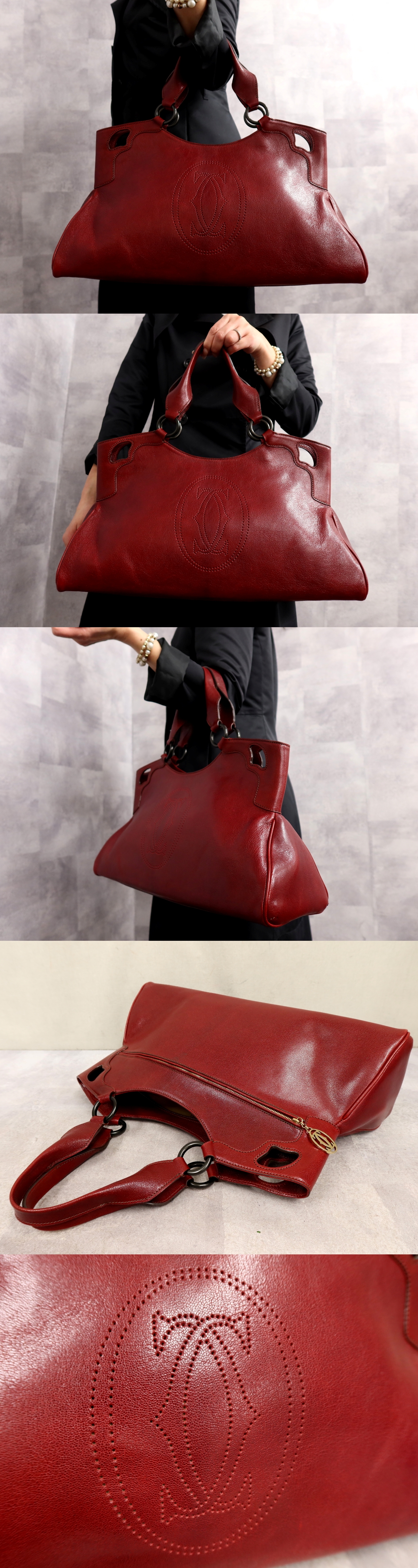 ●超美品●Cartier カルティエ●マルチェロ●カーフ レザー 本革●ハンド バッグ●ボルドー●ゴールド金具●腕掛け●B5 書類 収納●Js65467 收藏