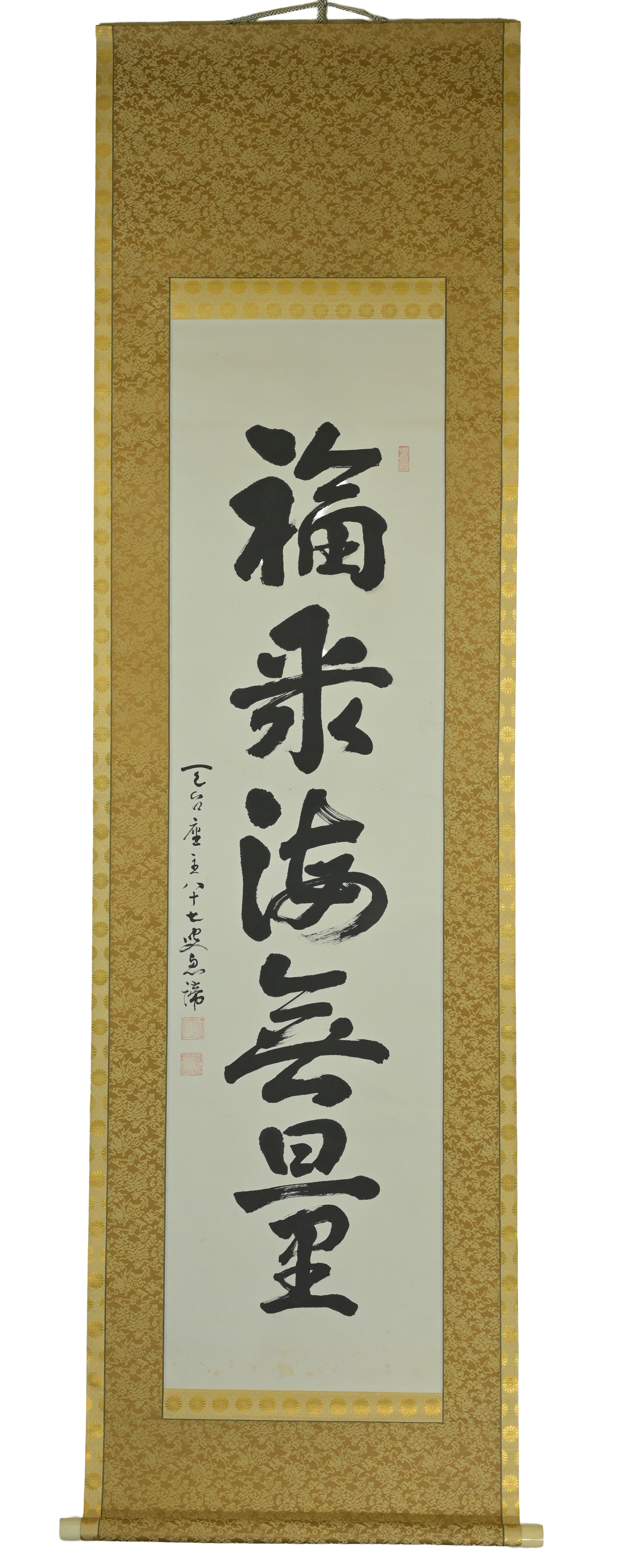 【真作】山田恵諦 一行書 「福聚海無量」掛軸 共箱 八拾七歳 播州清水寺天門落慶記念 天台座主二百五十三世 延暦寺 比叡山 收藏