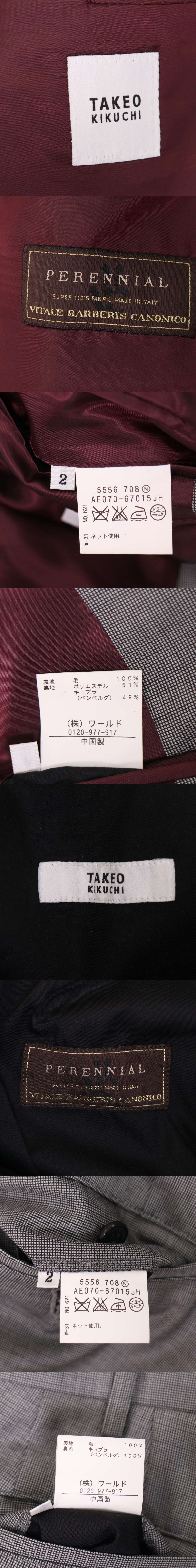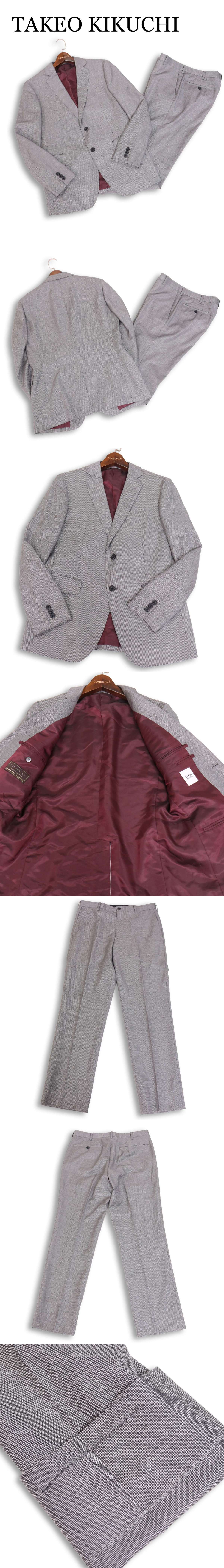 TAKEO KIKUCHI タケオキクチ 通年 SUPER110S カノニコ生地★ マイクロチェック セットアップ スーツ Sz.2 メンズ グレー 收藏