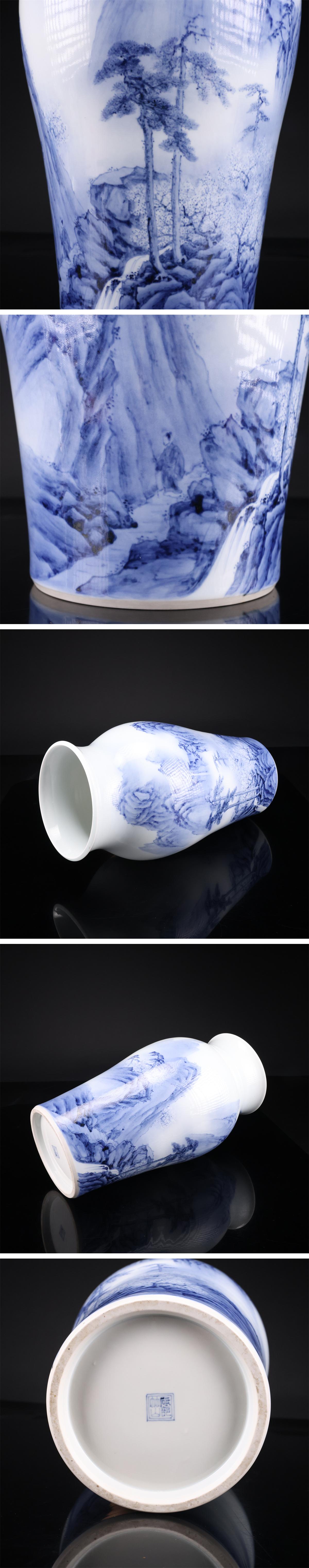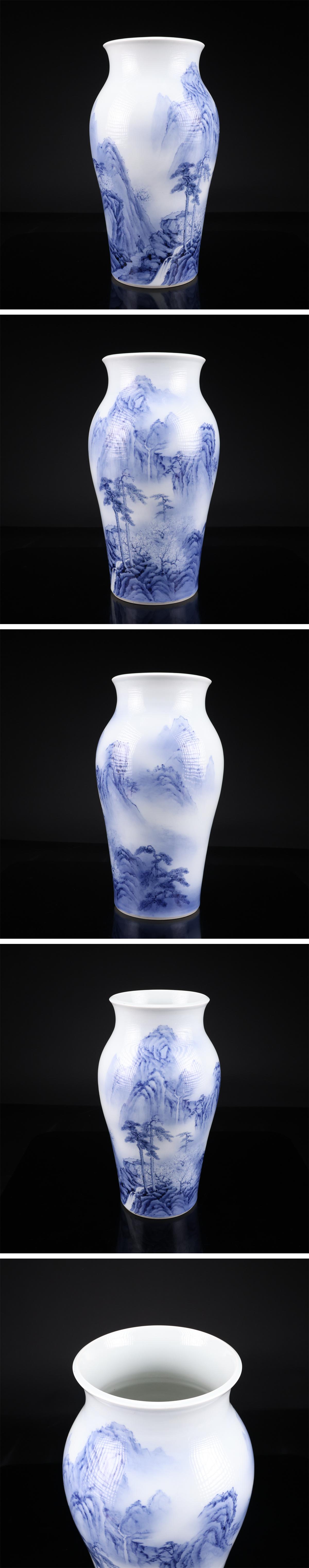 【吉】CP738 砥部焼名工 【林山 作】 染付 山水人物紋 大花瓶 高37㎝/美品g! 收藏