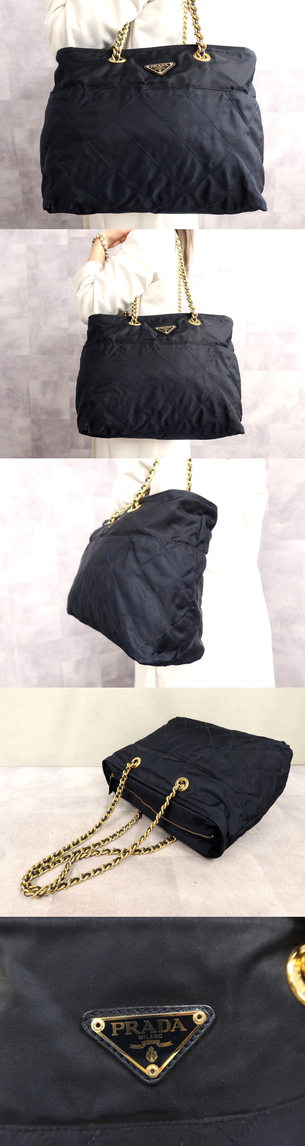 ●美品●PRADA プラダ●キルティング ポコノ ナイロン●チェーン ショルダー バッグ●ネイビー●G金具●肩掛け●ヴィンテージ●B5●Js65990 收藏