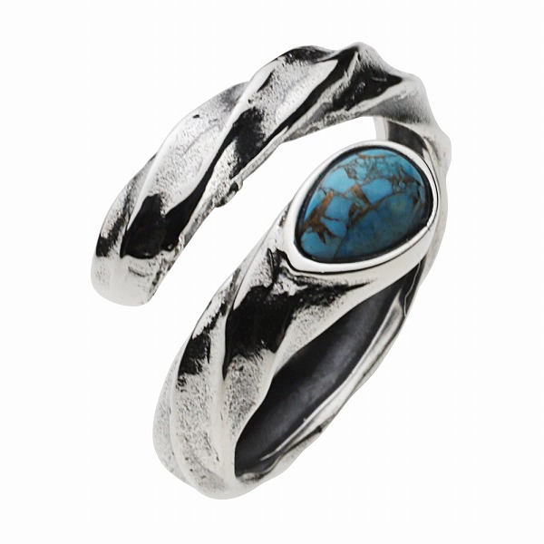 ターコイズ シルバーリング 指輪 メンズ スパイラル ツイスト ハード 青 石 シルバー925 リング フリーサイズ シルバーアクセサリー fr0492 收藏