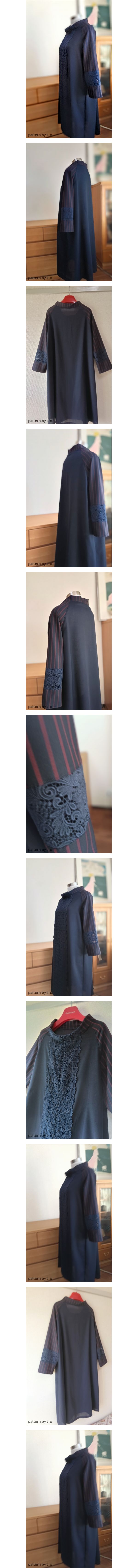 イタリア製ネイビーサマーウール+イタリア製ストライプウール&コットンケミカルレース♪ラグラン袖ゆったりワンピース ハンドメイド 收藏