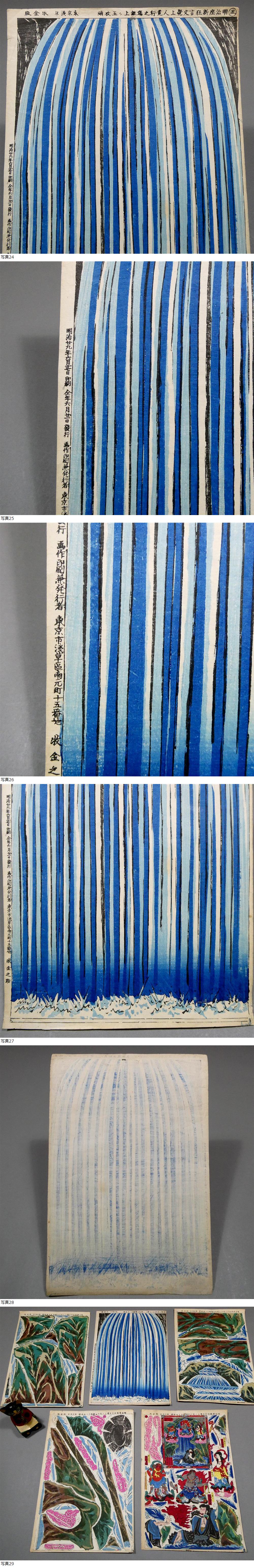 組上絵 5枚揃い! 瀧荒行◆牧金版「明治座新狂言文覚上人荒行之場組上ケ五枚続」◆明治29年 木版浮世絵■おもちゃ絵 仕掛け 国芳 芳藤 1 收藏