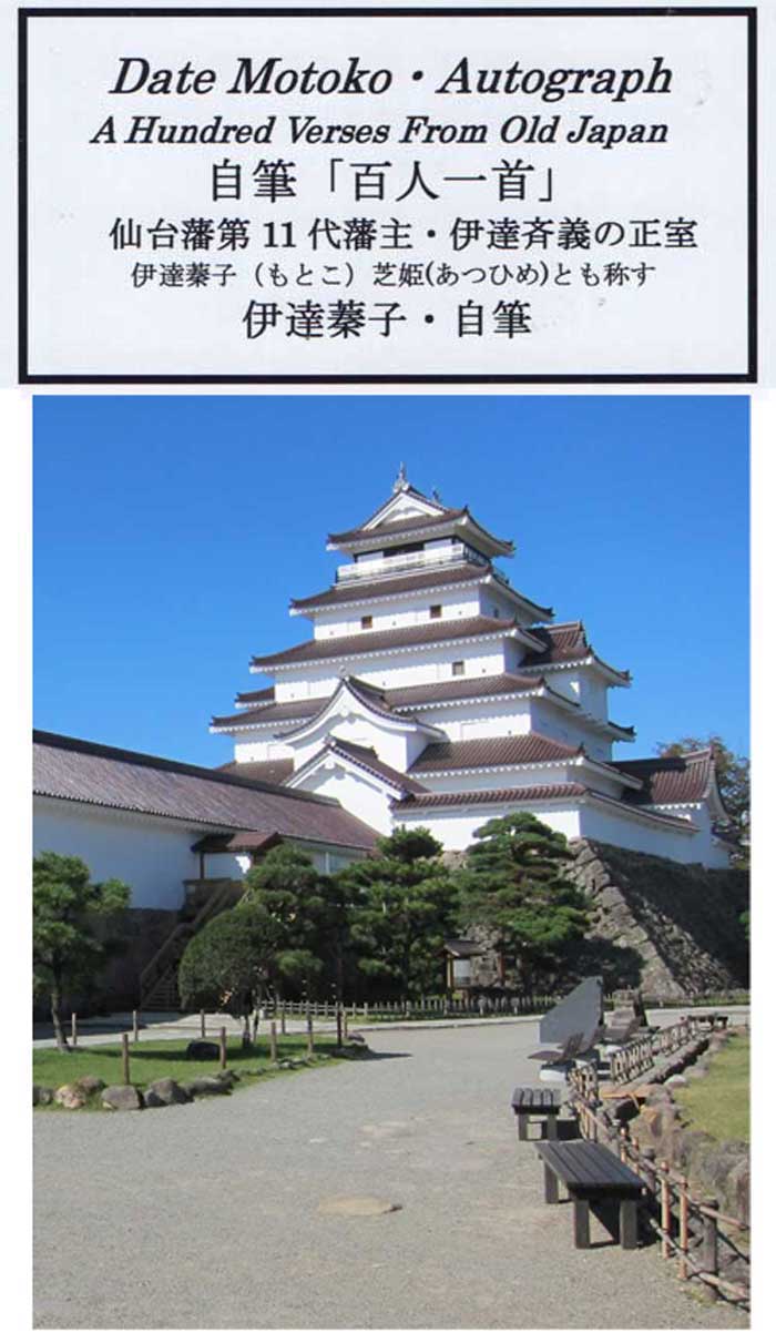 伊達蓁子(もとこ)は、仙台藩10代藩主・伊達斉宗の娘で「芝姫(あつひめ)」とも称される。養子として家督相続をした仙台藩11代藩主・伊達斉義の正室となる。蓁子(もとこ)は、和歌や漢詩の素養もある教養のある女性として知られておりますが、「百人一首」を記す際、漢詩を読み理解し共鳴していることがよくわかる。