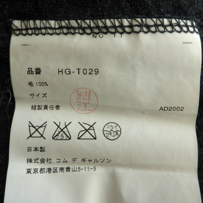 | コム・デ・ギャルソン(COMME des GARCONS) HOMME ウール 縮絨 カットソー 長袖 田中オム 2002AW グレー HG-T029 ウェア メンズ(中古) |