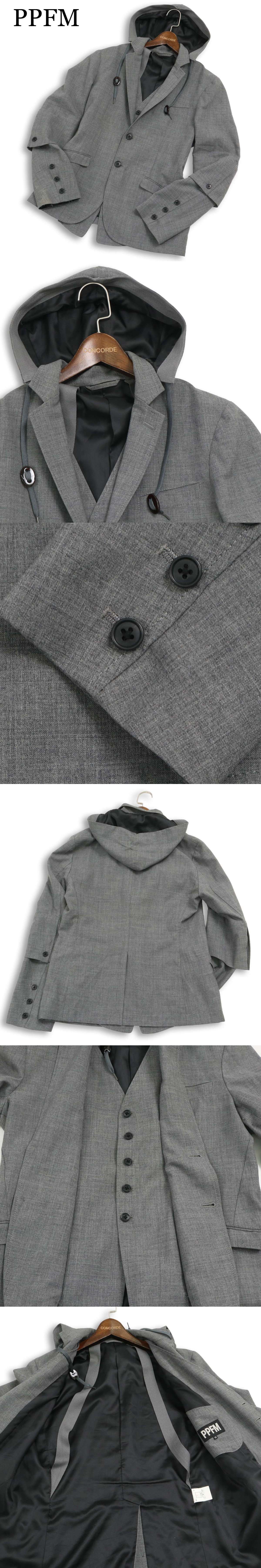 PPFM ペイトンプレイス 通年★ レイヤード風 フーディー テーラード ジャケット Sz.M メンズ 灰 グレー 收藏