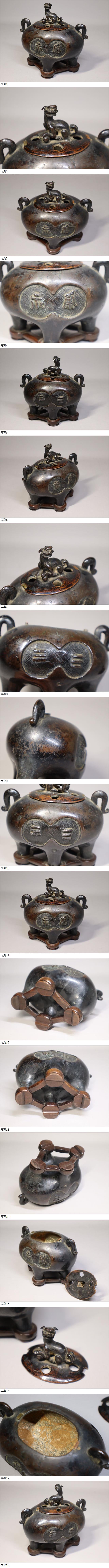 素晴らしい出来栄えの中国古玩 唐物古銅香炉 唐木台 唐銅です。古作ですので経年のいたみはありますが全体的には状態良好です。超絶技巧で細部に至るまで見事な出来栄えです。大切に保管されてきた一級品です。