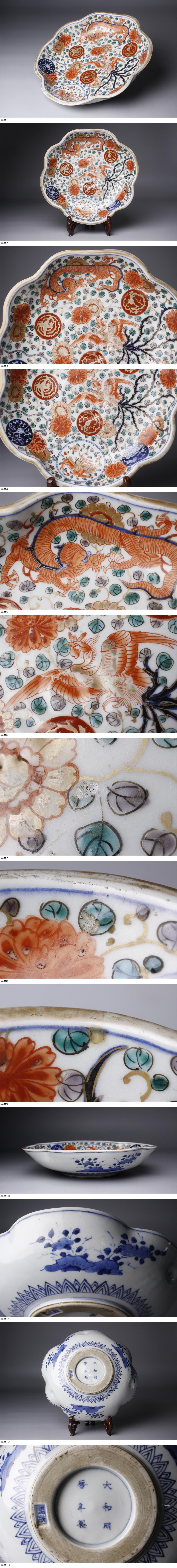 26030525* * * 商品詳細 * * * ここでしか出逢うことのできない唯一の美をご紹介させて頂きます。 華やかな意匠が目を惹く 龍鳳凰図鉢のご紹介です。 鉢の見込には面いっぱいに牡丹や唐草文が贅沢に配され、 その中に優雅に舞う龍と鳳凰が描かれた、格調高い意匠となっております、 緻密な絵付と贅沢な金彩によって圧倒的な存在感を放ち 縁を波打たせた輪花形の造形も優美で、 裏面には短冊 「酒柿」銘と「大和明暦年製」の文字もございます。 柿右衛門の長い伝統に裏打ちされた、高い美意識と技術が凝縮された時代の逸品を、 この機会にお手元にてご堪能下さい。 ■商品内容/鉢、資料、箱 ※皿立は付属しません。 ■サイズ/横25cm×縦5.5cm 箱:横27.5cm×縦10.5cm×奥行27.5㎝ ■状態/経年による傷み、スレ、傷、欠け、釉薬に剥げ、 箱にスレ、小傷、シミがございます。 ※写真にてご確認、ご了承の上ご入札下さい。 * * * 支払詳細 * * * !かんたん決済 * * * 発送詳細 * * * 入金確認後3営業日以内に発送致します。 ※直接引き取りも可能です。 60~160サイズにつきましては 佐川急便、ゆうパックのどちらかで発送いたします。 ゆうパック発送の場合、弊社の発送日から追跡サービスに問合せ番号が反映されるまで 約1日ほどお時間がかかりますのでご了承下さい。 * * * 注意事項 * * * 運送中の破損があった場合は速やかに当社までご連絡下さい。 保険を利用するのに受取連絡後に運送会社による現場での破損状況確認が必要となります。 勝手に返送されますと保険の適用外となりますのでご注意ください。 * * * * * * お問い合わせ:082-236-8669 |