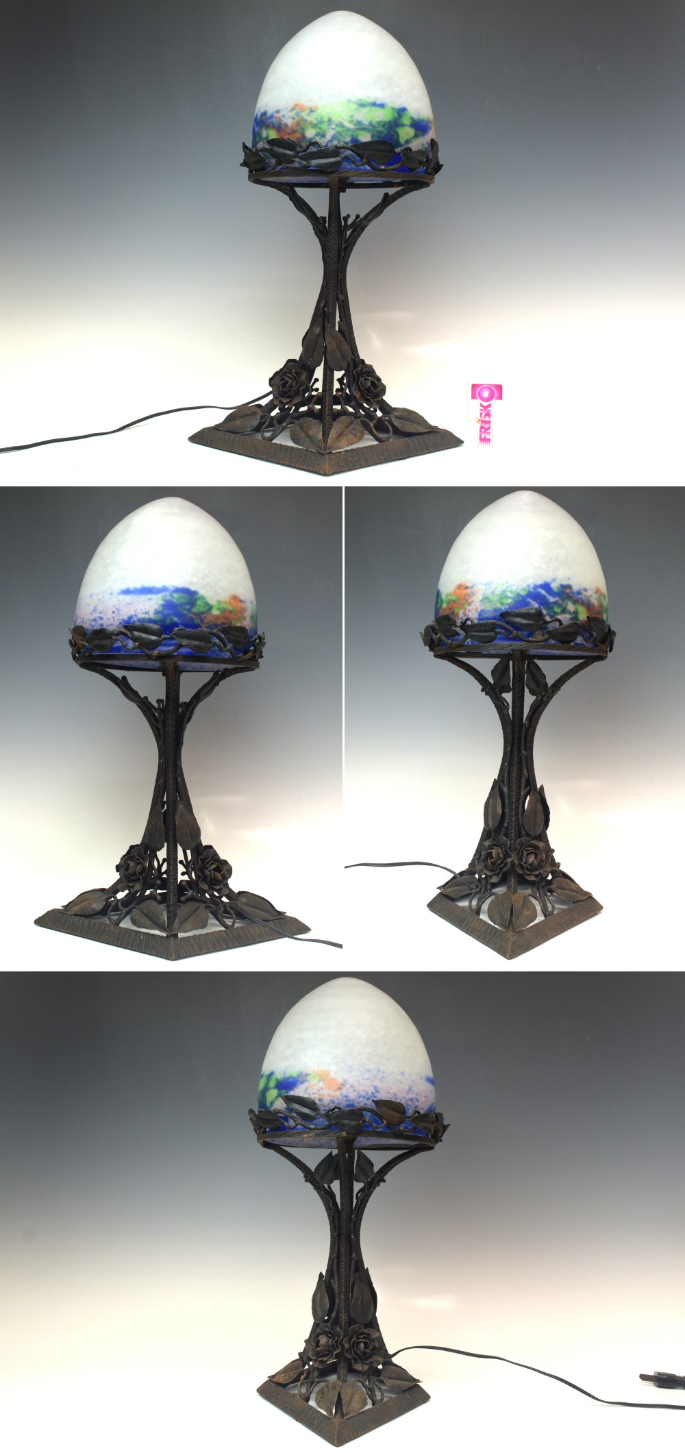 | 説明 | ミューラー兄弟 細密錬鉄台のガラススタンドランプです。 細部まで丁寧に造られており時代を経た存在感のあるランプです。 経年に伴う擦り傷や汚れ、シェードの縁に細かな欠け等ありますが、景観を損ねる目立った痛みは無く全体的に好状態です。(シェード上部は制作時のもので傷ではありません) 日本の通常のコンセントが使えますので、すぐに使用できます。 この機会をお見逃し無く! この他にも多数出品しておりますので宜しければご覧ください。 商品代金+消費税+送料の合計がお支払い代金となります。 |