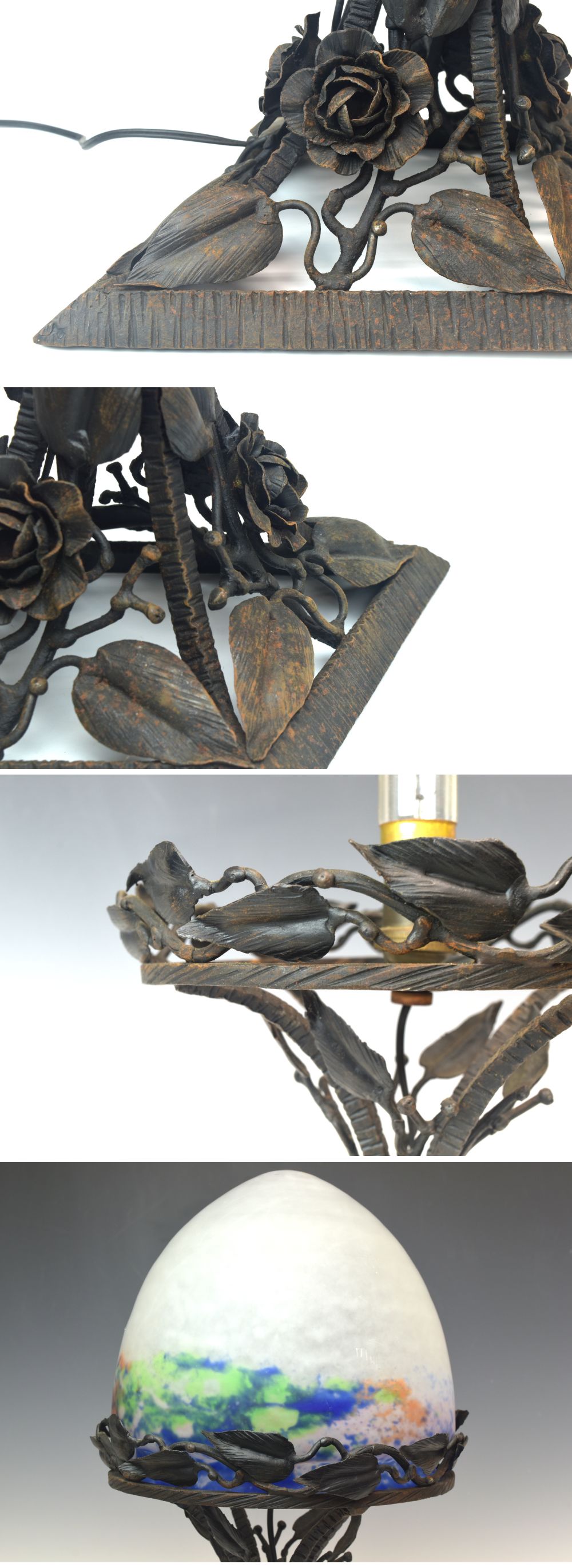 | 商品名 | 時代 ミューラー兄弟 細密錬鉄台ガラススタンドランプ 高さ45cm 重量3,4kg C2251【趣楽】 | ||