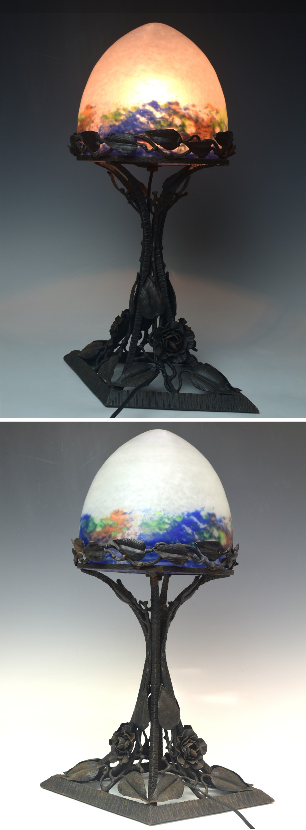 時代 ミューラー兄弟 細密錬鉄台ガラススタンドランプ 高さ45cm 重量3,4kg C2251【趣楽】 收藏