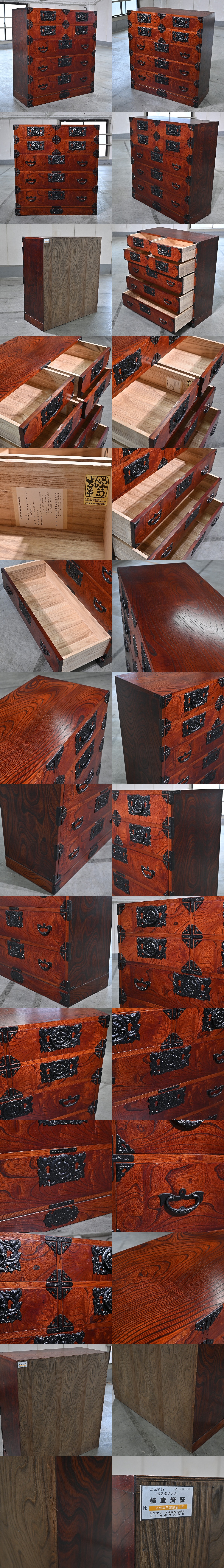 岩谷堂箪笥「YMAR2991F」整理たんす 欅材 南部鉄器金具 引出し 収納 洋服 和箪笥 チェスト リビング ダイニング 寝室 書斎 和室 店舗 客間 收藏