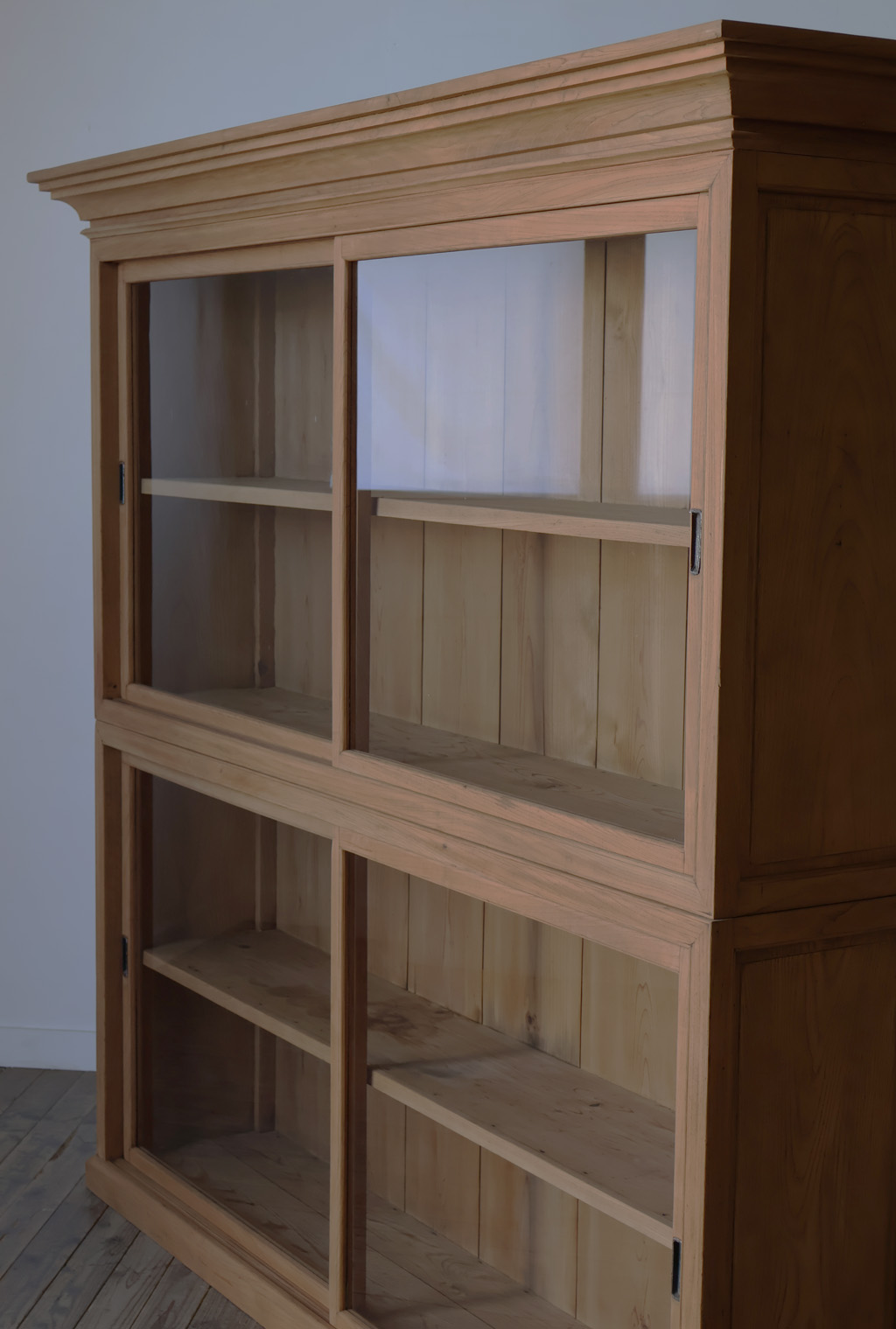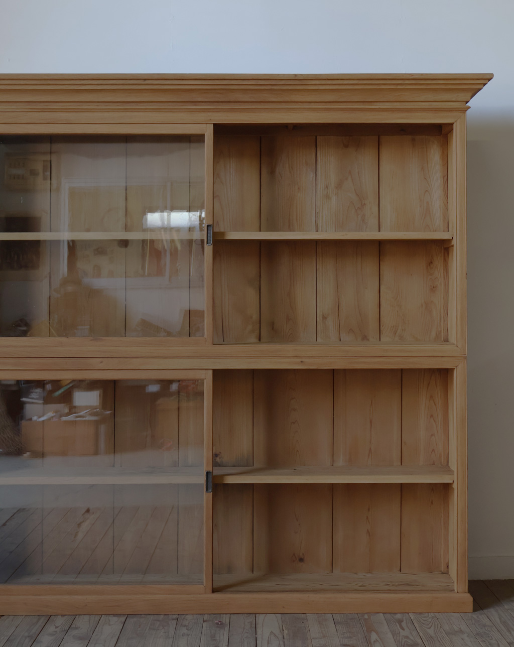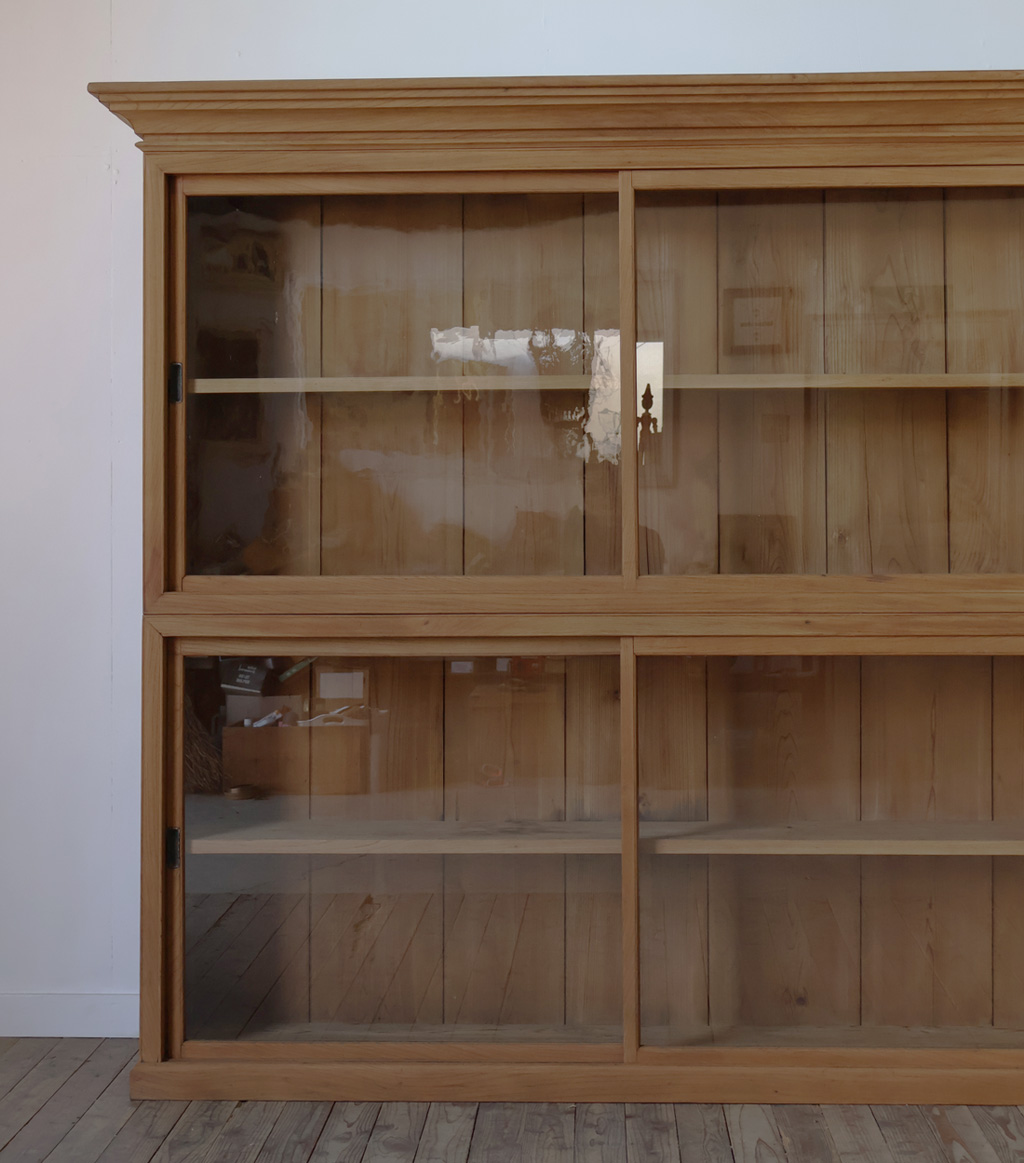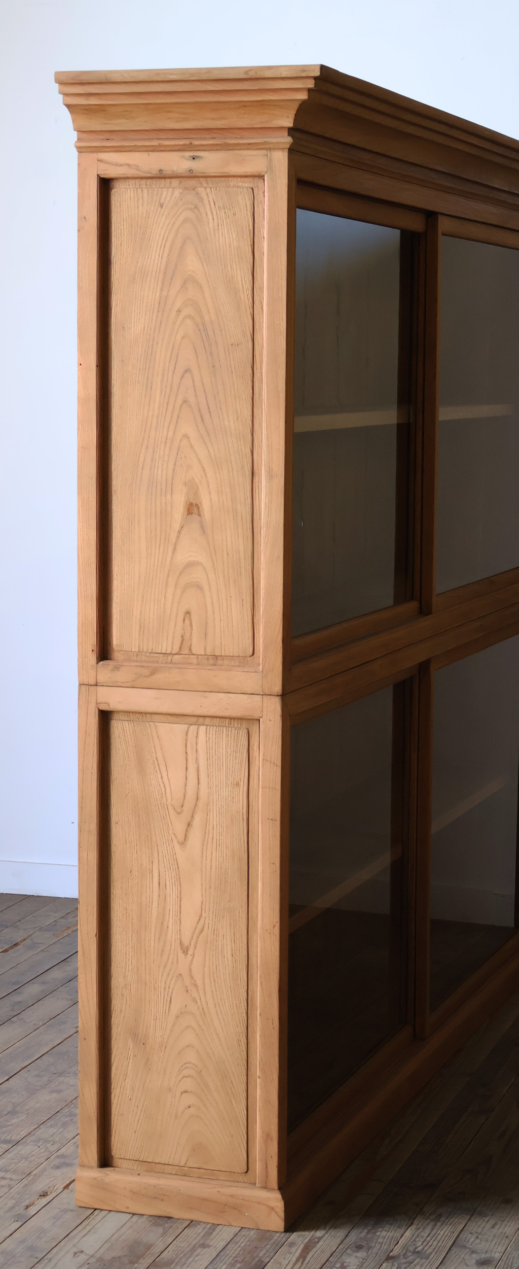 【古手◆欅材◆重ね◆造りの良い大きなガラス戸棚】アンティーク店舗ギャラリーカフェ什器食器棚飾り棚本棚ガラスケース展示台ケビント大正 收藏