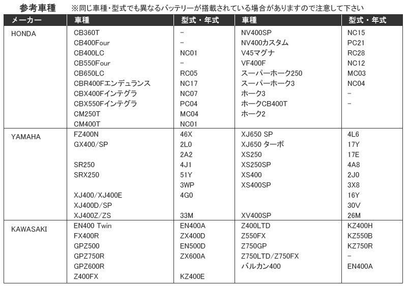 | 注意 | バッテリーの取外・取付の作業は熟練した方でお願いします。 事故での破損・バッテリー上がりは保証対象外となります。 液別バッテリーは医薬用外劇物に該当します。 毒物劇物取締法14条により「毒物及び劇物譲受書」に必要事項を記入し、 返信用はがきを郵送していただく必要がございます。 なお、譲受書は商品に同封しており、郵送料は当社負担です。 返信して頂けない方への販売は一切お断りしております。 【必要事項】 ・商品の授与の年月日 ・氏名(※必ず押印のこと) ・職業 ・住所 ・年齢 ・使用目的など 以下の方には販売できません。 1.18歳未満の者 2.心身の障害により危害の防止の措置を行えない者 3.麻薬、大麻、あへん又は覚せい剤の中毒者 |
