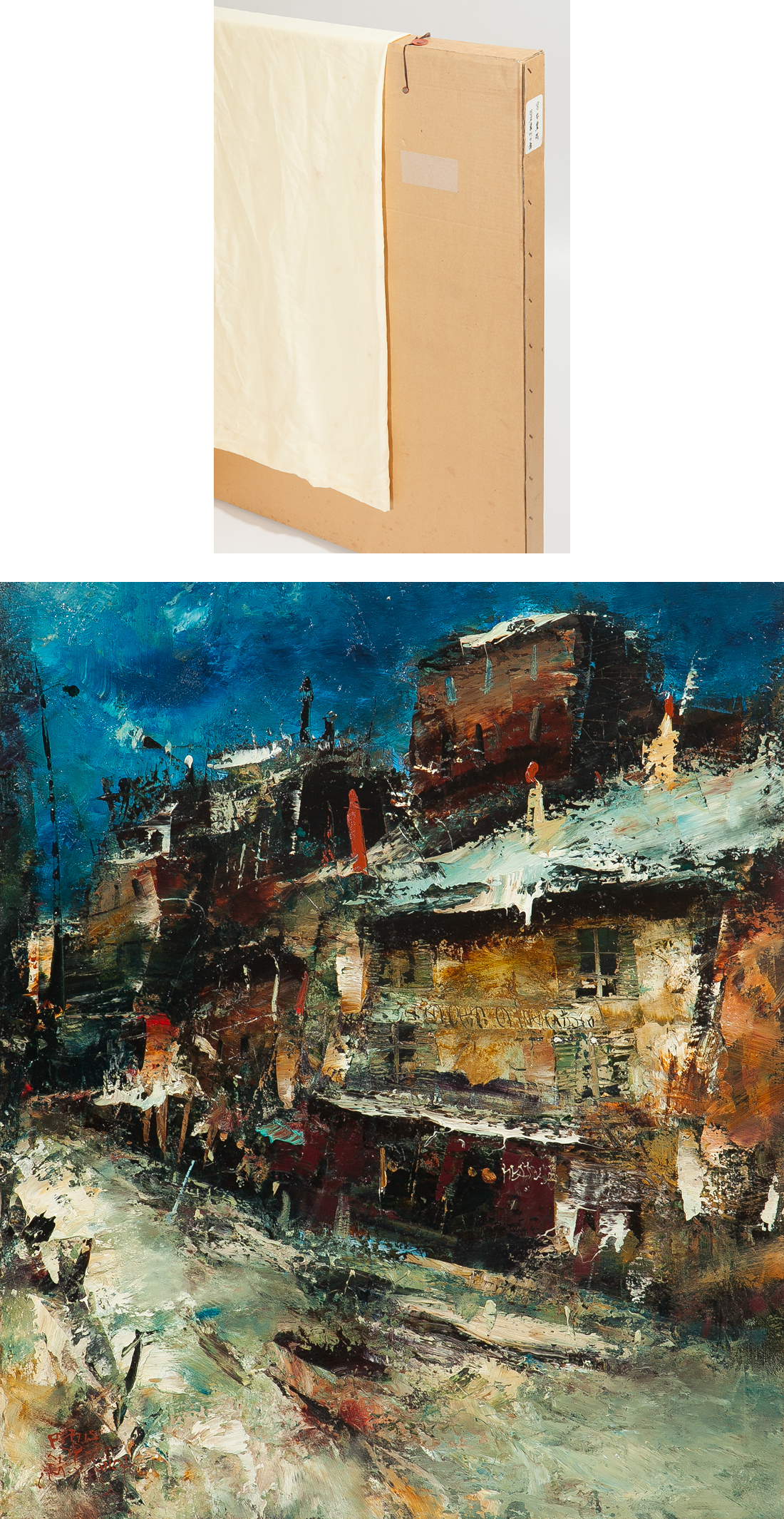 【1on1】真作 宮本豊蔵 『巴里裏街残雪』 油彩 キャンバス 20号 額装 古径額 ■ 佐伯祐三を彷彿とさせる魂の洋画家 收藏