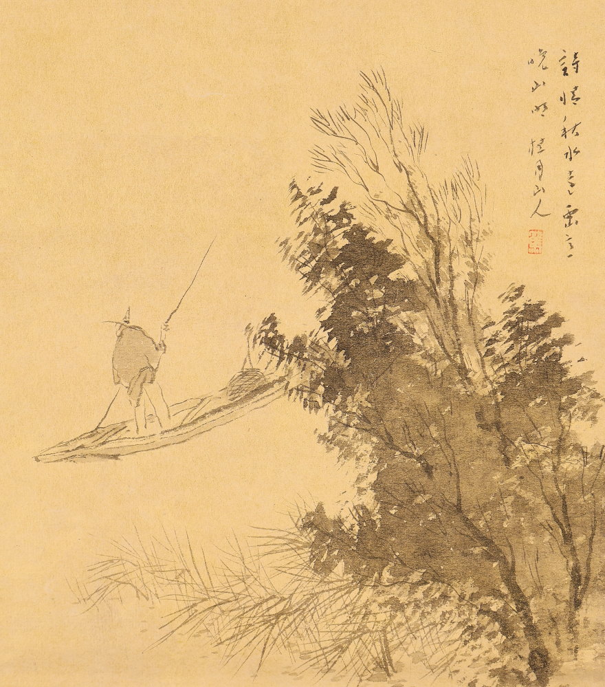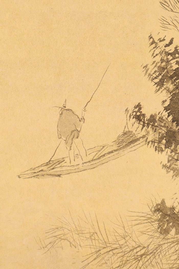 【模写】【伝来】ts2622〈松林桂月〉舟人物図 共箱 野口幽谷師事 南画家 明治時代 山口の人 收藏