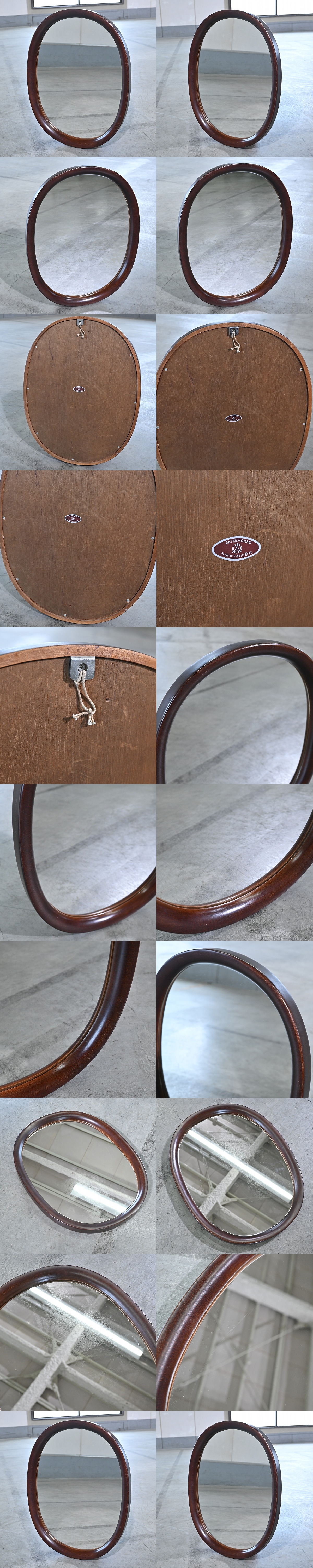 秋田木工 柳宗理デザイン ウォールミラー ブナ材 シンプル 曲げ木鏡 小判型 古代色 壁掛け鏡 玄関 リビング トイレ 和洋 AKITAMOKKO 收藏