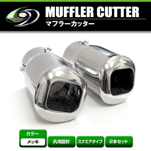 【送料無料】 マフラーカッター シルバー ストレート 2本出し スクエア型 短管式 2本 後付け リアパーツ マフラー 本体 エアロ 收藏