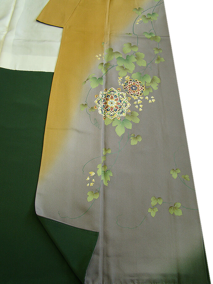 ※装いの場を選ばないフォーマルシーンを気品で満たす紋意匠地の訪問着です。 帯や小物次第で自分らしい様々な表情をお愉しみ頂ける逸品です。 パーティーや結婚披露宴、慶事の宴、冠婚祭、社交着等々。。 40代~70代迄幅広く着用出来ます。身長150cm~156cmの貴女に最適です。 | ||||||||||||||