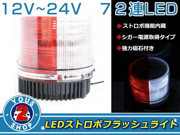 高輝度☆ 72連 LED 回転灯 12V / 24V パトランプ ストロボ フラッシュ ライト 誘導灯 警告灯 作業灯 サイレン 2色 / 白 & 赤 收藏