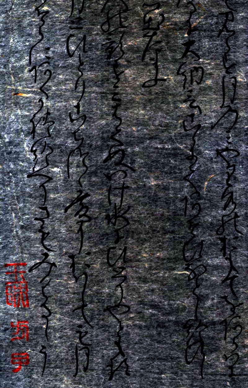 自筆の稀少価値は、和紙の生成技法の緻密さにあります。上の「拡大断層(MRI)写真」でわかる通り、極めて薄い和紙の上に墨の文字がくっきりと浮き上がるように「源氏物語」の文字が記されております。 出品している書の「断層(MRI)写真」の原板は、レントゲン写真と同じ新聞の半分ほどの大きさのフィルムです。肉眼では見ることのできない和紙の繊維の一本一本のミクロの世界を見ることができます。日本国内では医療用以外には見ることのできない書の「断層(MRI)写真」です。 古切の書は、一旦表装を剥離し分析と鑑定検査のために「断層(MRI)写真撮影」をしております。撮影後、展示のために再表装をしております。掛軸や屏風にすることが可能なように、「Removable Paste(再剥離用糊)」を使用しているため、自筆の書に影響をあたえずに、容易に「剥離」することができるような特殊な表装となっております。 |