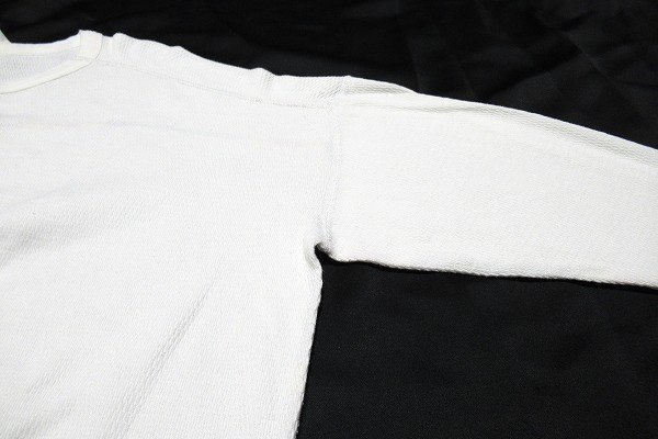★正規品です。身幅はゆったり目のシルエットのサーマル生地を使用したロンTです。袖や裾のステッチが表は白、裏はレインボーカラーになっております。袖口や裾のステッチが切り忘れのようなデザインでヴィンテージアイテムによくあるような玄人好みのデザインです。もともと内側についている下げ札は簡単に取れるようになっておりリバーシブルで着用いただけます。タ縫い目はフラットな縫い目です。