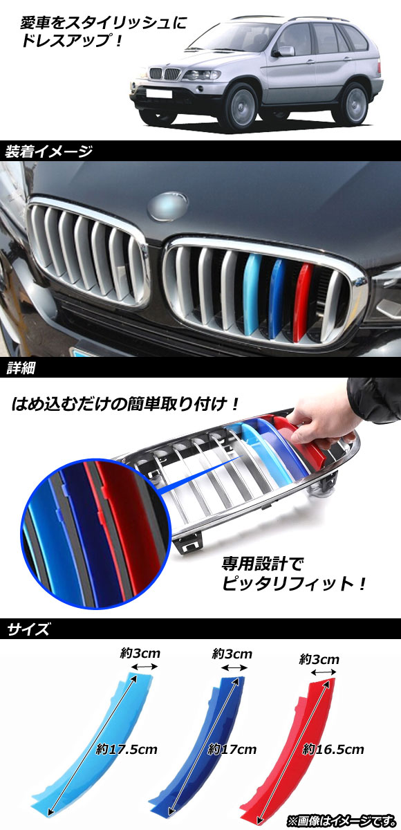 フロントグリルカバー BMW X5 E53 2004年~2007年 3色 Mカラー ABS樹脂 AP-FG112 入数:1セット(3個) 收藏