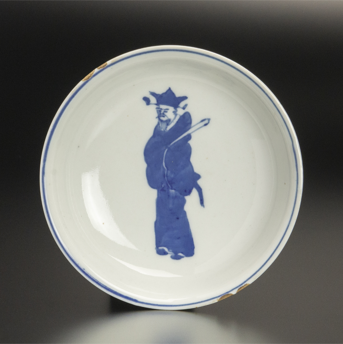 明 青花文官人物紋盤 古染付 中国 古美術 收藏