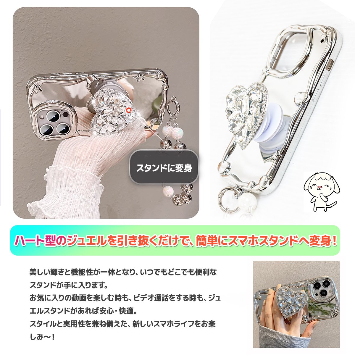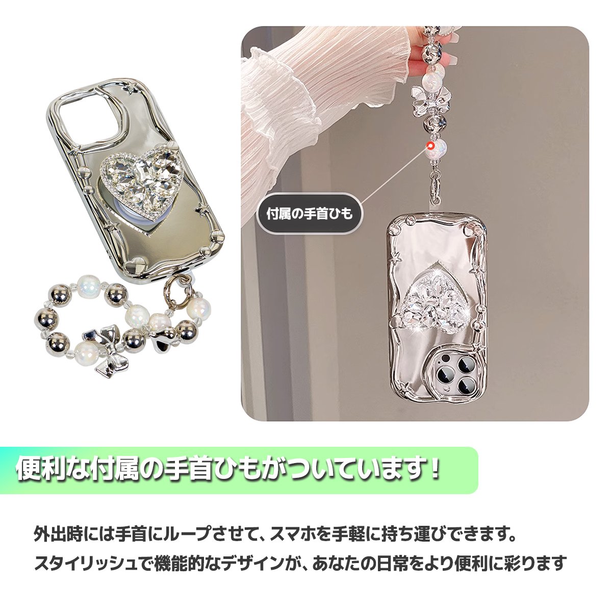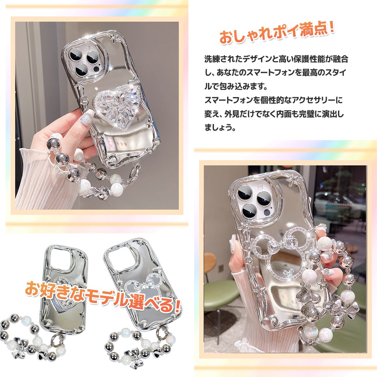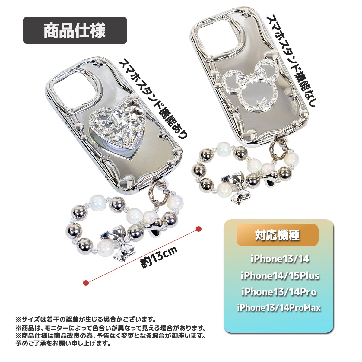 商品の詳細 | 取り外し可能ショルダーストラップ付属のiPhoneケース。 キラキラした表面で、センスの良さがアピール。 安定感抜群のハンドベルトでスマホの操作性もUP。 おしゃれなデザインでコーデに合わせやすく、程よい存在感でカジュアルにも。 柔軟で衝撃吸収性のあるTPU素材を使用。 装着したまま充電OK、使いやすさ抜群。 しなやかで弾力のある素材は端末の着脱も楽ちんです。 精密な打ち抜きでスマホにぴったりフィットできます。 iPhone アイフォン スマートフォン 携帯電話 メンズ レディース 男女兼用 iPhone 15 (6.1インチ) iPhone 15Plus (6.7インチ) iPhone 14 (6.1インチ) iPhone 14 Pro (6.1インチ) iPhone 14 Plus (6.7インチ) iPhone 14 Pro Max (6.7インチ) iPhone 13 Pro Max (6.7インチ) iPhone 13 Pro (6.1インチ) iPhone 13 (6.1インチ) 種類:マウス、ハート ※ご希望タイプをご購入手続きの際に「ご要望」にご記入ください。 ご記入が無い場合、ランダム発送とさせて頂きます。予めご了承ください。 | |