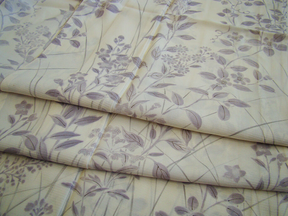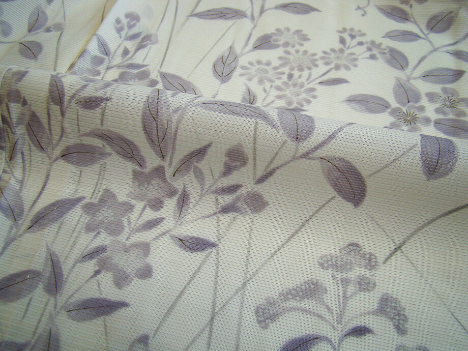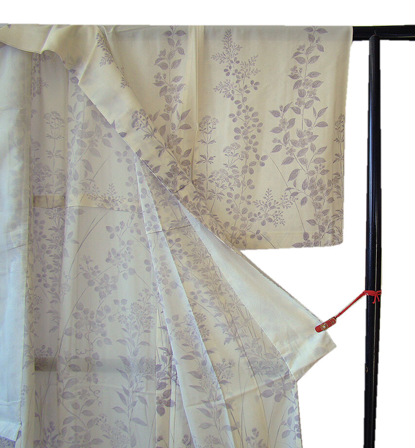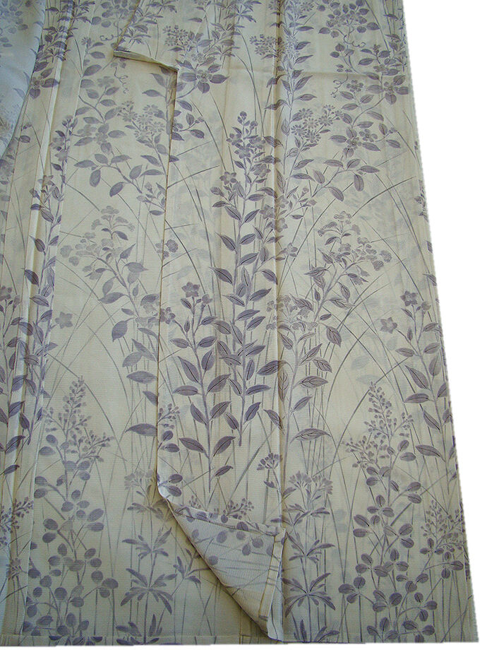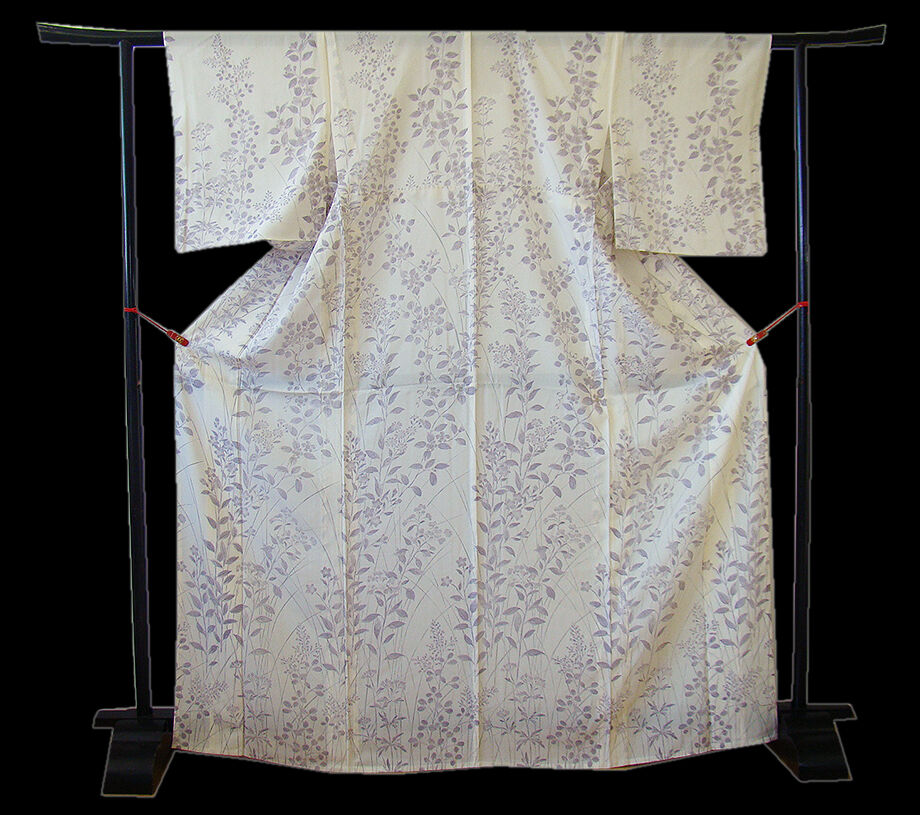 | 商品説明 | こちらのお品は夏物でございますので、7月~8月にお召頂ければと思います。 「絽」と言えば、紗と双璧を成す夏のお着物の生地で その最大の魅力は絶妙の透かし加減でございます。 清涼感溢れる地の風を通すしなやかさは夏に着物を着るという贅沢を 快適に愉しませてくれることでしょう。 着物には、大きく分けて「袷(あわせ)の着物」と「単衣(ひとえ)の着物」と「夏着物」があります。 反物(表地)を着物に仕立てるときに、裏地類をつけるものを袷の着物、 つけないものを単衣の着物と呼び、胴裏や八掛といった裏地がつかない一枚ものの着物です。 また裏地がないため、座る時などにヒップのラインが目立たないよう、 居敷当て(いしきあて)の生地をつけることもあります。 居敷当ては付いておりません。 とてもしなやかなさらっとした肌触りが極上の着心地を誘う滑らかな「駒絽」の生地は 象牙色地に藤紫、墨色等の花草柄の染柄が洒落感高い着物姿を演出しております。 |
