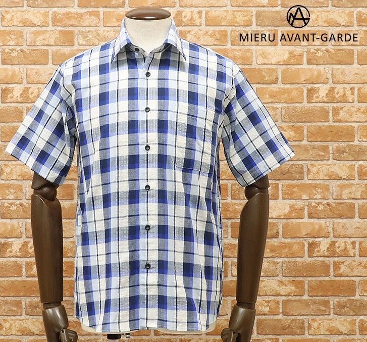 ★MIERU ミエル AVANT-GARDE〓清涼サッカー半袖チェックシャツ〓M 未使用 日本製 青 收藏